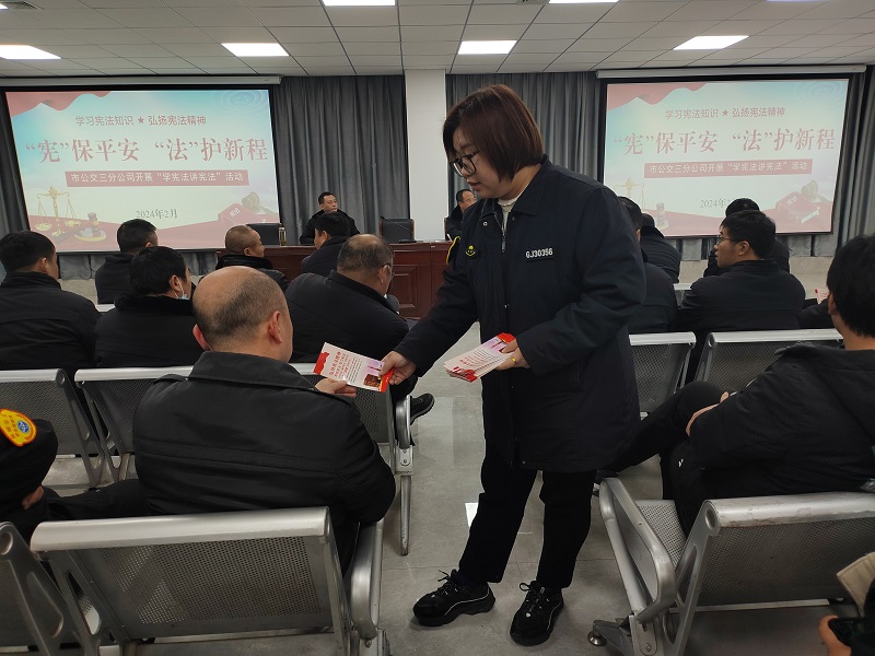 為深入學(xué)習(xí)貫徹黨的二十大精神,貫徹落實習(xí)近平法治思想和習(xí)近平總書記關(guān)于加強憲法學(xué)習(xí)宣傳教育的重要指示精神,2024年2月6日,三分公司利用月度安全教育例會契機,組織開展以“‘憲’保平安 ‘法’護新程”為主題的學(xué)憲法講憲法活動,旨在以法制宣傳教育筑牢安全生產(chǎn)防線。