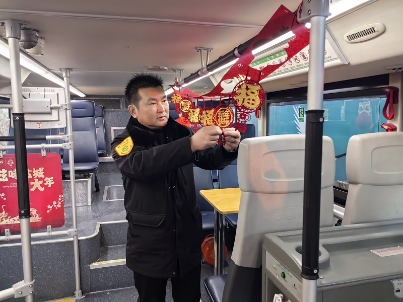 春節(jié)期間,公司增開的2條免費旅游專線,串聯(lián)了市區(qū)重點景區(qū)、特色街區(qū)和文博場館,方便市民乘客出游。新春主題車廂喜慶氣氛濃厚,給出行游玩的乘客送上特別的新春驚喜,讓市民出行之路溢滿濃濃的年味。