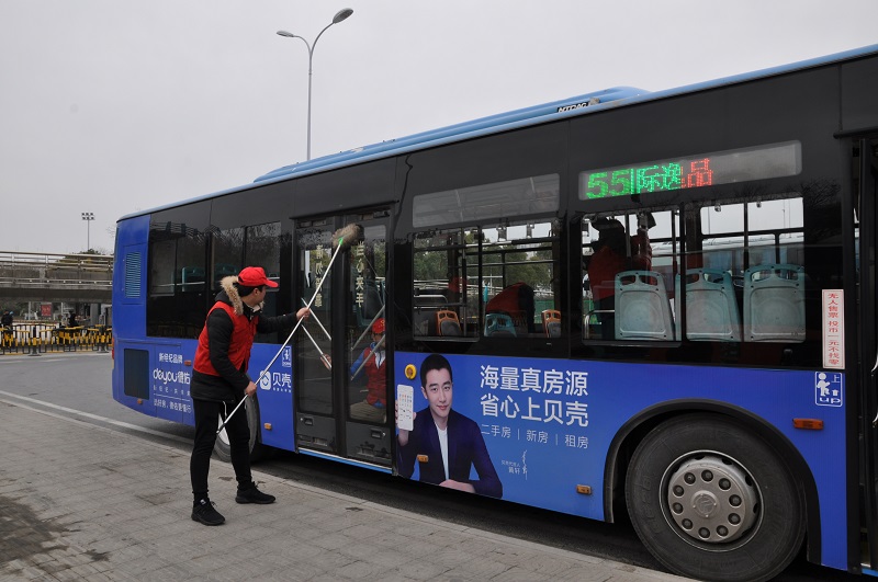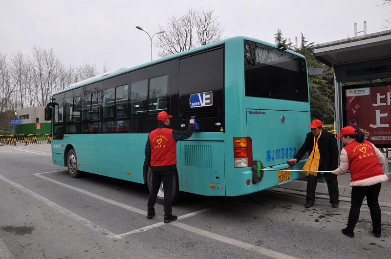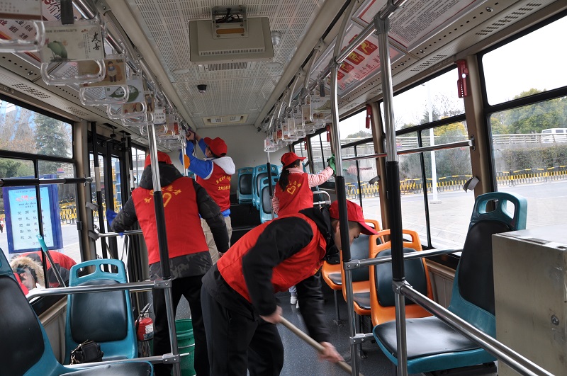 在火車(chē)站公交回車(chē)場(chǎng)和城西公交回車(chē)場(chǎng),二、三分公司的公交志愿者們協(xié)助司乘人員對(duì)公交車(chē)廂、車(chē)身及候車(chē)亭進(jìn)行清掃保潔,著力為乘客營(yíng)造干凈舒適的乘車(chē)、候車(chē)環(huán)境。