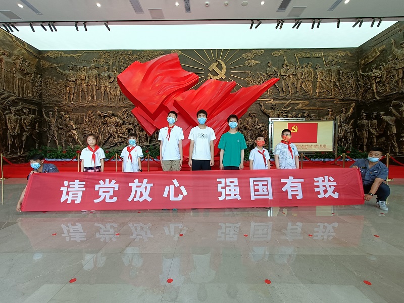 黨旗下,一起參觀學(xué)習(xí)的職工子女用稚嫩卻飽含深情的聲音,喊出自己鏗鏘有力的誓言,“請黨放⼼,強(qiáng)國有我!請黨放心,強(qiáng)國有我!請黨放心,強(qiáng)國有我!”這響亮的青春誓言震撼⼈⼼。