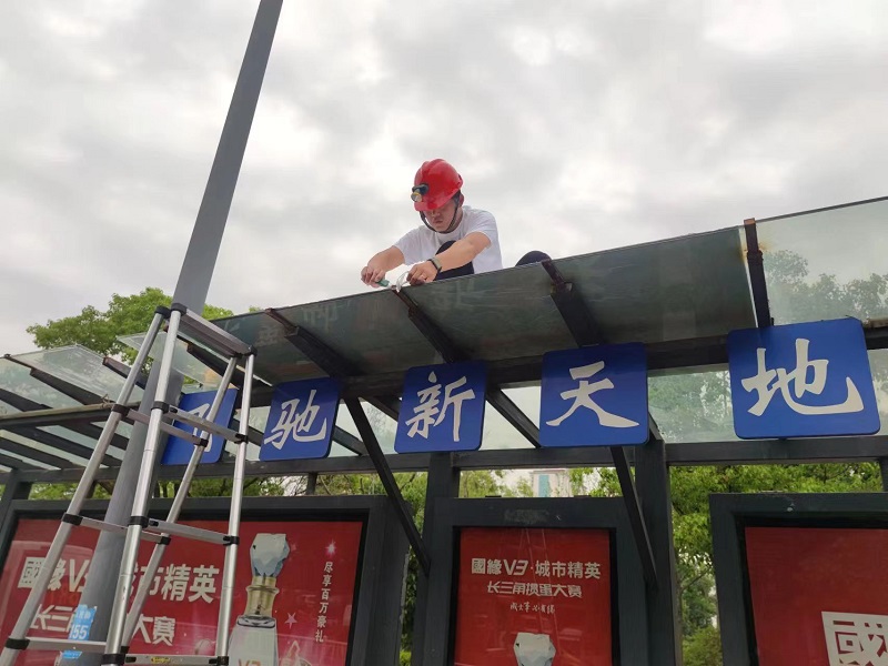 為把好事辦實(shí)、把實(shí)事辦好,順利推進(jìn)公交候車亭頂棚加裝遮陽設(shè)施工作,前期,市公交服務(wù)公司場站維修隊(duì)精心選擇三種遮陽材料進(jìn)行測試,經(jīng)對比,選擇了重量輕、成本低、效果佳、顏值高的錫紙貼,有效緩解了市民在炎炎夏日下候乘的酷熱問題。