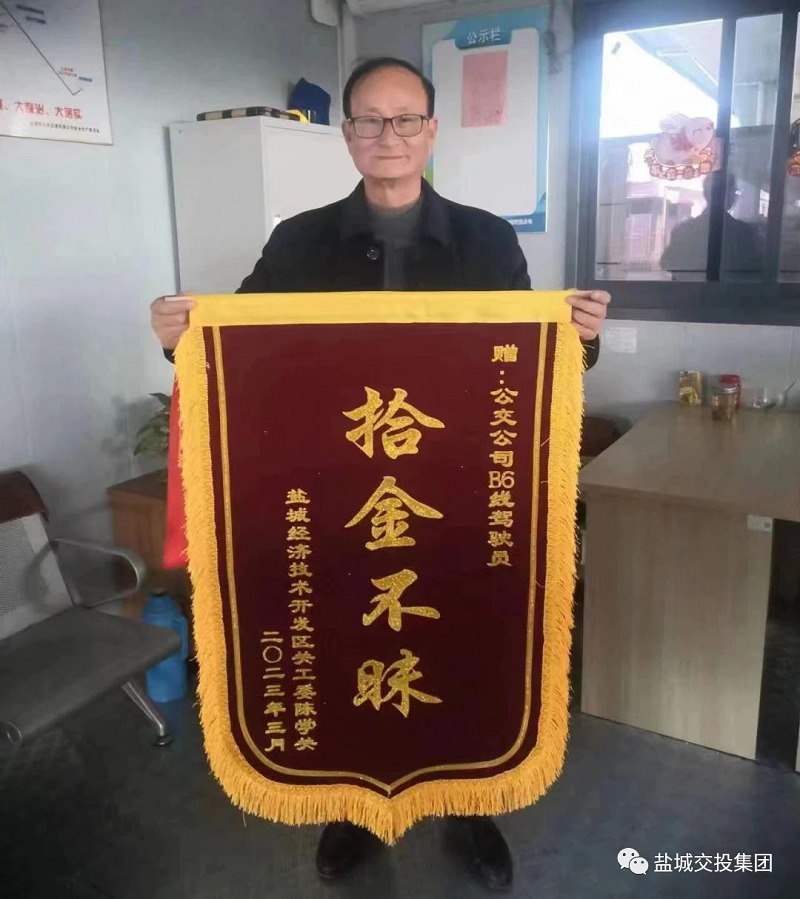 22日上午,陳老先生回到鹽城后立即趕到潮聲路公交回車場(chǎng),取回心愛(ài)的二胡,并送上一面錦旗表達(dá)對(duì)B6線駕駛員與線調(diào)室的工作人員的感激之情!澳銈兌际呛脴拥,你們急乘客之所急的精神值得表?yè)P(yáng),一面錦旗表達(dá)不了我的感謝之情,在我心里你們給我的服務(wù)是滿分的”。陳老先生激動(dòng)地說(shuō)道。