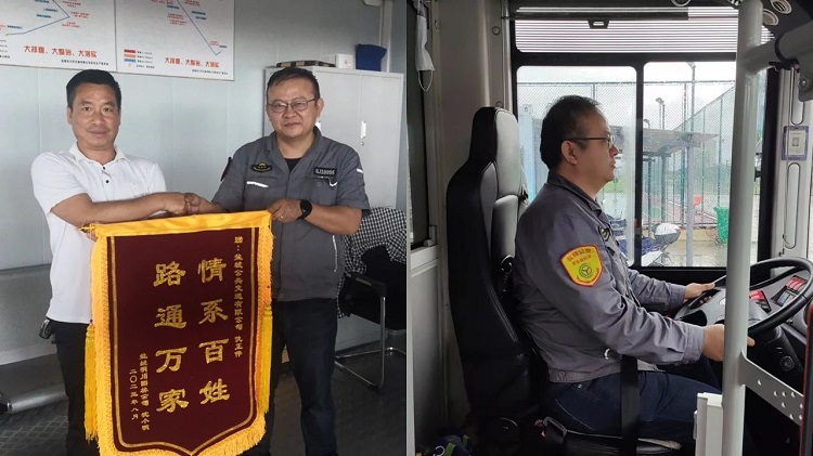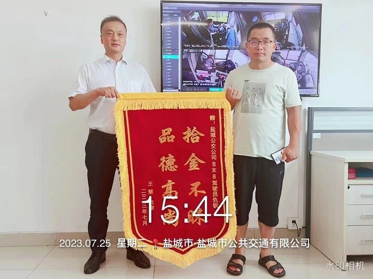 8月15日中午13時10分左右,人民路與黃海路路口一輛轎車失火,正在營運的B1線駕駛員仇正偉與30路駕駛員張正亮合力撲滅火情,車主沈先生送來了一面“路通萬家、情系百姓”的錦旗表示感謝。